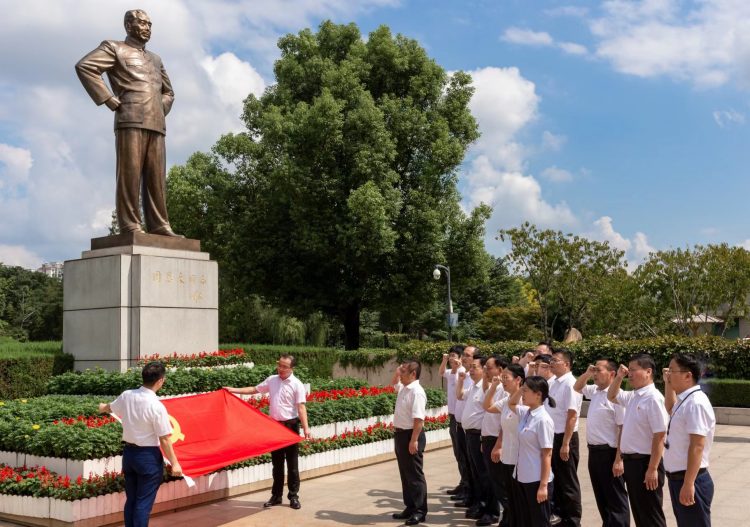 黨員們懷著崇敬的心情瞻仰了周恩來紀(jì)念館,在周恩來總理漢白玉雕像前敬獻(xiàn)花籃,靜默肅立,鄭重三鞠躬。隨后,黨員們參觀了“人民總理周恩來”陳列展,在一件件珍貴的歷史資料和實物前,大家駐足凝視,認(rèn)真聽取講解,深切緬懷周恩來總理的光輝一生,全體黨員莊嚴(yán)地舉起右拳面對鮮紅的黨旗齊聲宣誓,重溫入黨誓詞。