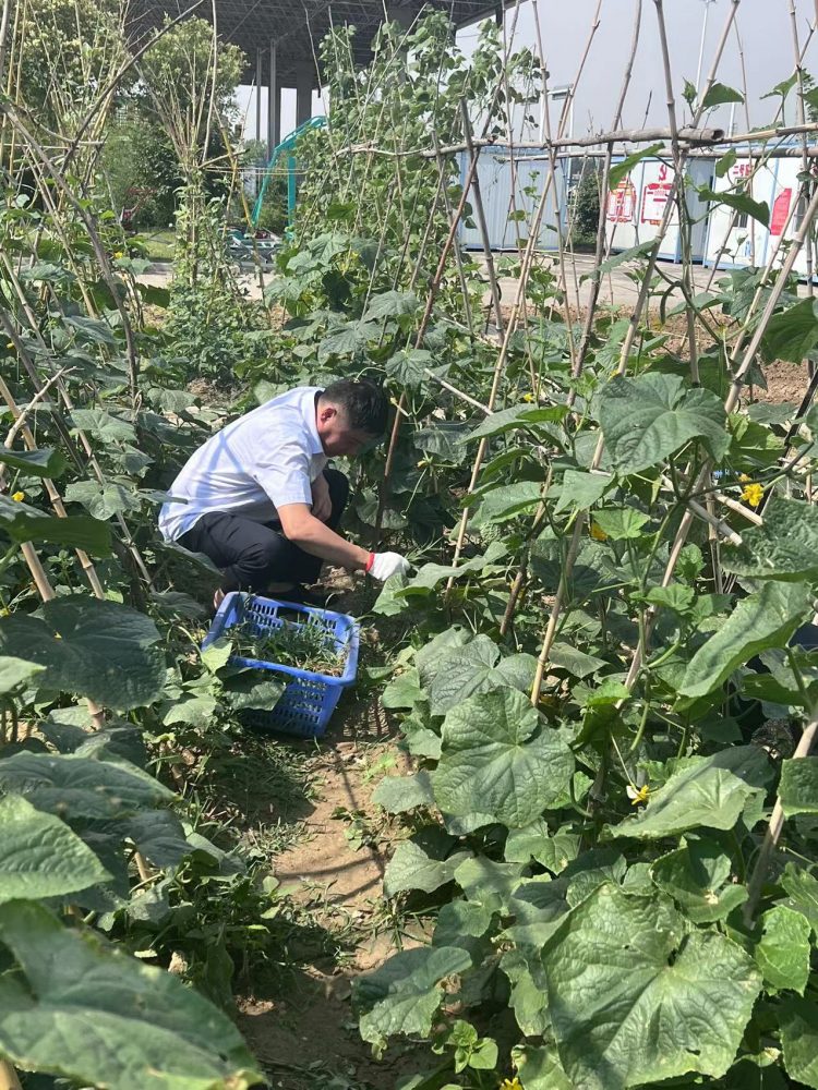 活動現(xiàn)場,天氣雖然炎熱但擋不住黨員勞動的熱情,領(lǐng)取了勞動工具后,分工協(xié)作,按照分配好的耕作區(qū)域開始認真勞作,清理站內(nèi)綠化草坪并按照要求進行分類投放,清理的雜草作為站內(nèi)飼養(yǎng)牲畜的飼料,做到物盡其用,采摘下來的蔬菜水果作為食堂食材,不僅豐富了職工的“菜盤子”,還降低了收費站食堂運營成本。