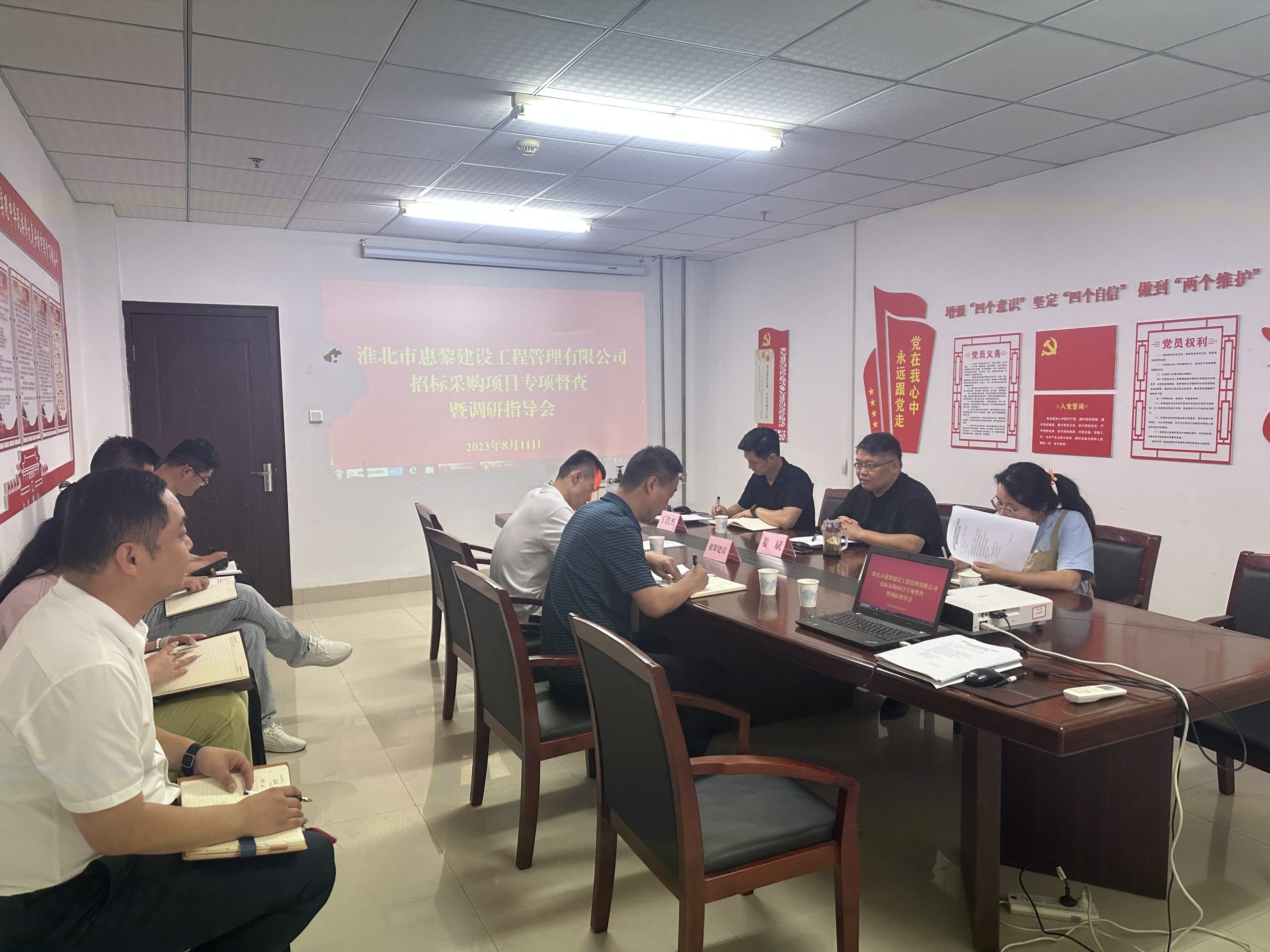 8月11日上午,市建投集團(tuán)黨委委員、紀(jì)委書記、監(jiān)察專員姜斌一行到淮北市惠黎建設(shè)工程管理有限公司調(diào)研指導(dǎo)工作。姜斌一行實(shí)地查看了惠黎建設(shè)公司的辦公場所、開評標(biāo)場所和招標(biāo)代理業(yè)務(wù)的相關(guān)資料,惠黎建設(shè)主要負(fù)責(zé)人匯報(bào)了公司今年以來的業(yè)務(wù)發(fā)展情況和下一步工作打算。參會的集團(tuán)公司紀(jì)委工作人員就風(fēng)險(xiǎn)管控、提質(zhì)增效、精細(xì)化管理等方面給予指導(dǎo)。