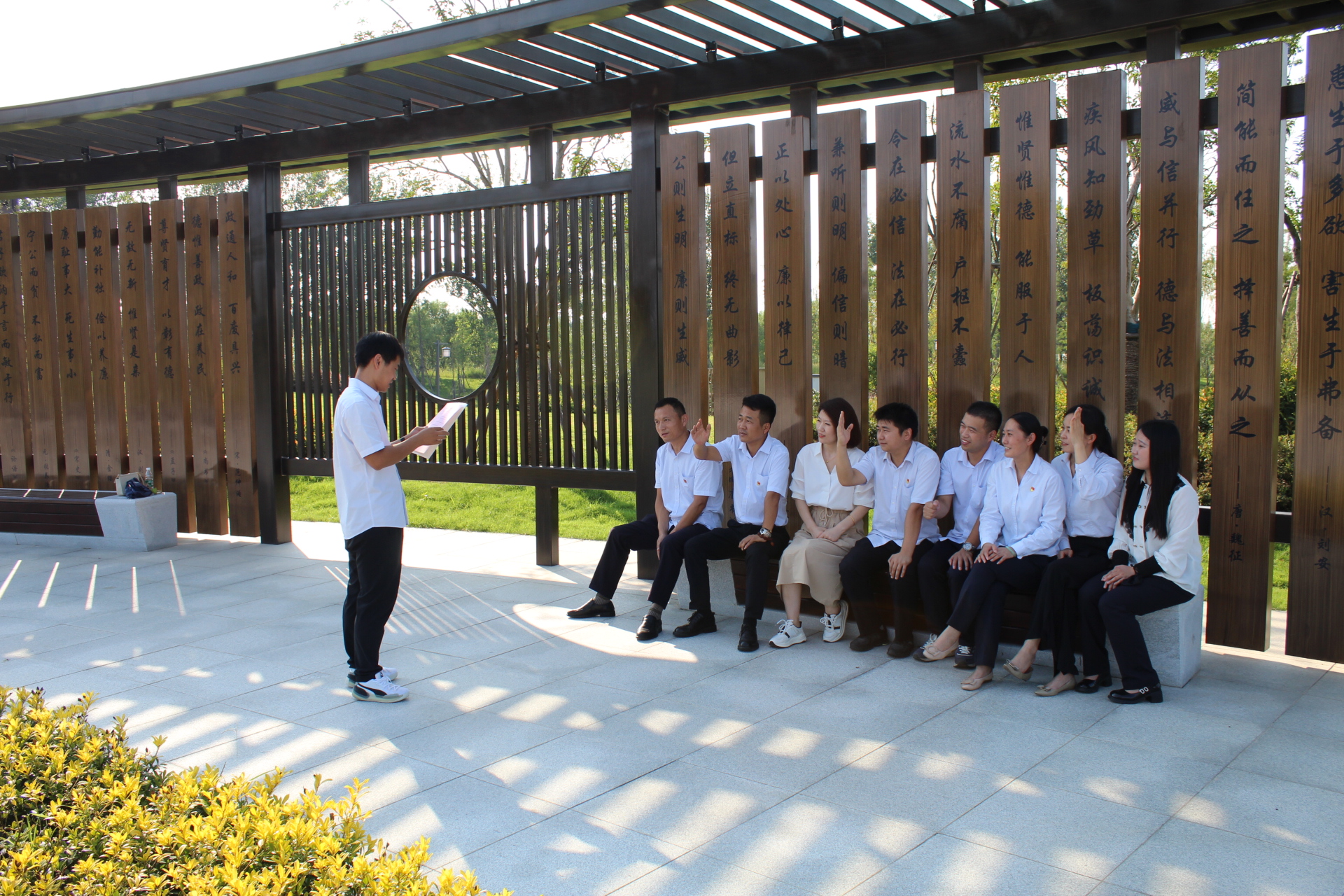 為進一步提升融通公司支部黨員干部的廉潔從業(yè)意識和拒腐防變的能力,加強黨員干部廉潔自律意識,8月31日下午,融通黨支部組織全體黨員干部和積極分子前往淮北市朔西湖廉潔文化園開展廉潔教育主題黨日活動。