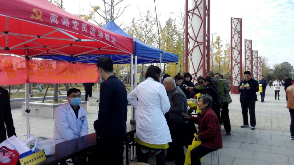 活動現(xiàn)場,黨員志愿者張貼黨的十九大宣傳海報、擺放黨的十九大宣傳展架,向廣大游客發(fā)放黨的十九大宣傳單,并組織開展義診活動,得到廣大游客的熱情歡迎。