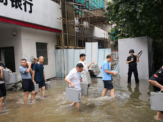 18日清晨6:30分,濉溪農(nóng)商銀行總行由于地勢低洼,加之雨勢較大,街道排水不暢,水位已達(dá)半米深,情況十分危急。農(nóng)商行領(lǐng)導(dǎo)高度注視,緊急從外調(diào)入沙袋進(jìn)行抗洪搶險(xiǎn)。關(guān)鍵時(shí)刻,淮北市保安有限公司駐濉溪農(nóng)商銀行三中隊(duì)的押運(yùn)隊(duì)員們在中隊(duì)長劉軍的帶領(lǐng)下挺身而出跳入水中,奮力扛起沙袋,對銀行出入大門、金庫聯(lián)動門進(jìn)行封堵。同時(shí)派駐陳體超,代亮亮、梁良、李晨晨、武成波、朱勝杰、楊海濤,劉翔兩個(gè)班組人員晝夜搶險(xiǎn),他們不怕臟、不怕累用水盆等工具將金庫內(nèi)的積水排出。經(jīng)過兩天一夜的奮戰(zhàn),汛情得到有效控制,挽回了重大損失,有力保障了濉溪農(nóng)商銀行正常的工作秩序。8月24日,濉溪農(nóng)商銀行的領(lǐng)導(dǎo)親自登門給公司送來錦旗,并對在抗洪搶險(xiǎn)工作中表現(xiàn)優(yōu)異的押運(yùn)班組表示慰問。