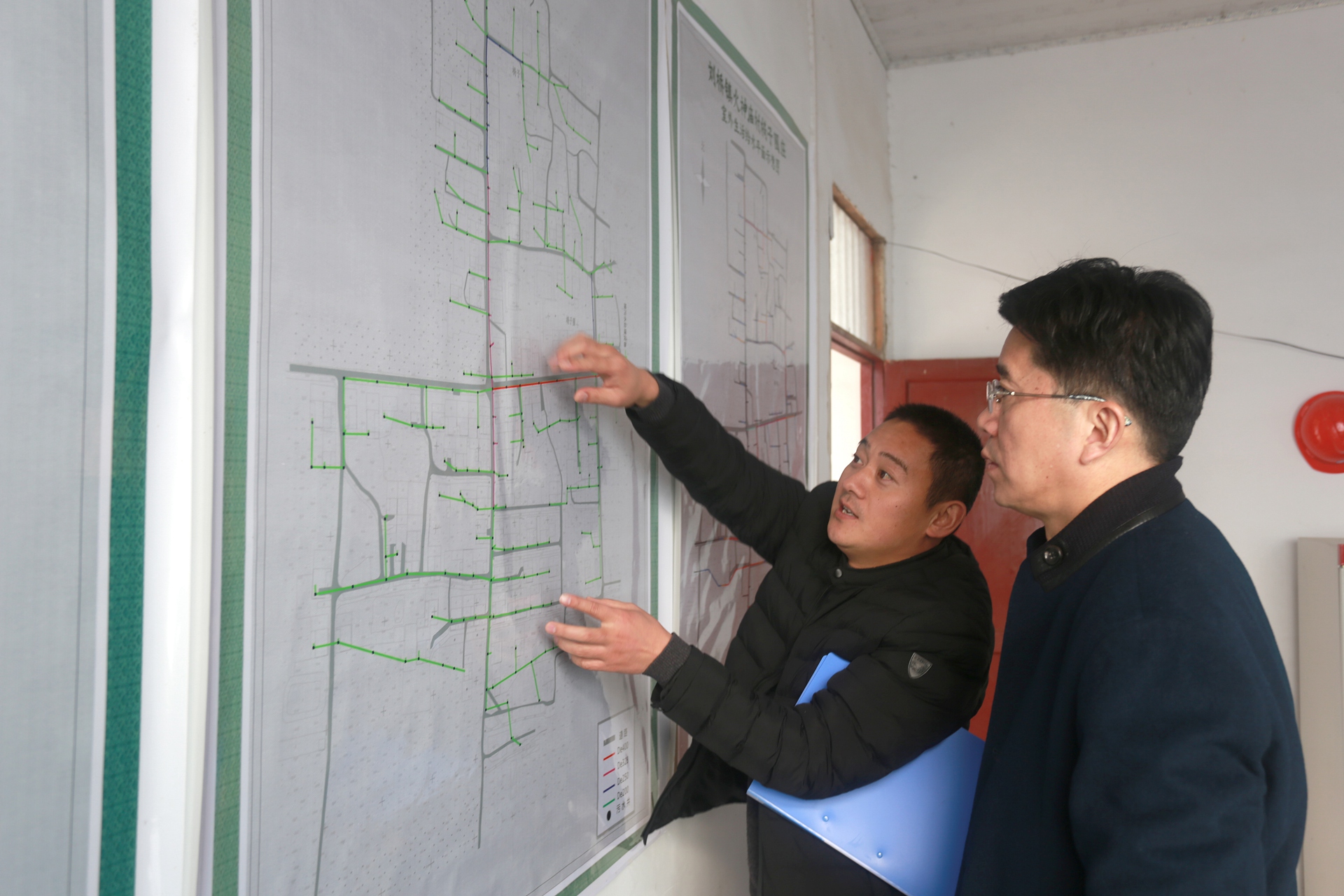 王獻(xiàn)忠現(xiàn)場(chǎng)查看了椅子圈莊給排水廁改工程規(guī)劃施工圖,實(shí)地勘察工程進(jìn)展情況。與村干部、施工單位、監(jiān)理交流了解工程質(zhì)量、時(shí)間節(jié)點(diǎn),詳細(xì)詢問項(xiàng)目落實(shí)過程中的困難和問題,現(xiàn)場(chǎng)交辦解決問題。