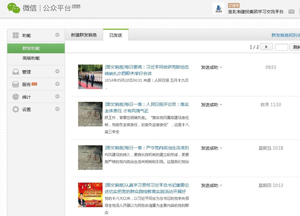微信平臺共開設(shè)7個板塊:時政要聞、群教專題、黨風(fēng)廉政、集團動態(tài)、每日一警、每日一省、每日一學(xué),通過微信以圖文、音頻、視頻等形式,第一時間傳達(dá)上級精神要求,及時傾聽群眾呼聲,用更直接、更喜聞樂見的方式宣傳黨的群眾路線教育實踐活動,微信平臺的親和力和互動性,有效拉近了黨群干群關(guān)系,促進(jìn)了干部群眾的工作熱情。