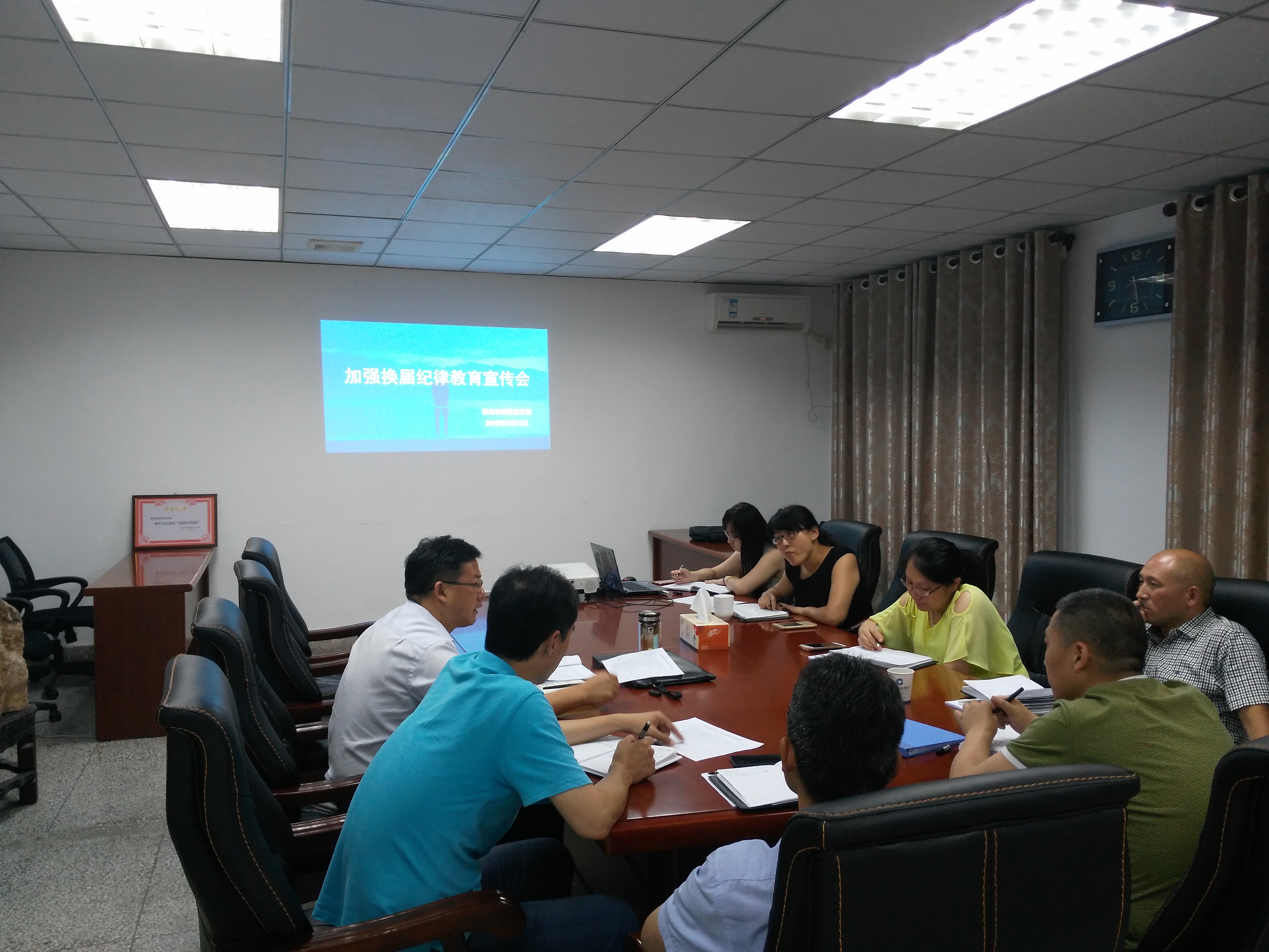 7月5日,交投黨支部在市交投會議室召開“嚴肅換屆紀律教育宣傳會”。交投黨員干部集體觀看警示教育片《鏡戒》,隨后認真學習了《嚴肅換屆紀律文件選編》和《黨政領導干部選拔任用工作條例》。交投總經(jīng)理張立哲就如何做好換屆選舉工作提出要求:黨員干部要嚴守紀律底線,嚴格要求自己“以銅為鑒,可以正衣冠;以人為鏡,可以知得失”,要以“鏡鑒”為鏡,時刻審視自己、檢查自身,做清正廉潔之人。要牢記“九個嚴禁”和“九個一律”,認真履行好職責,營造風清氣正的換屆氛圍。