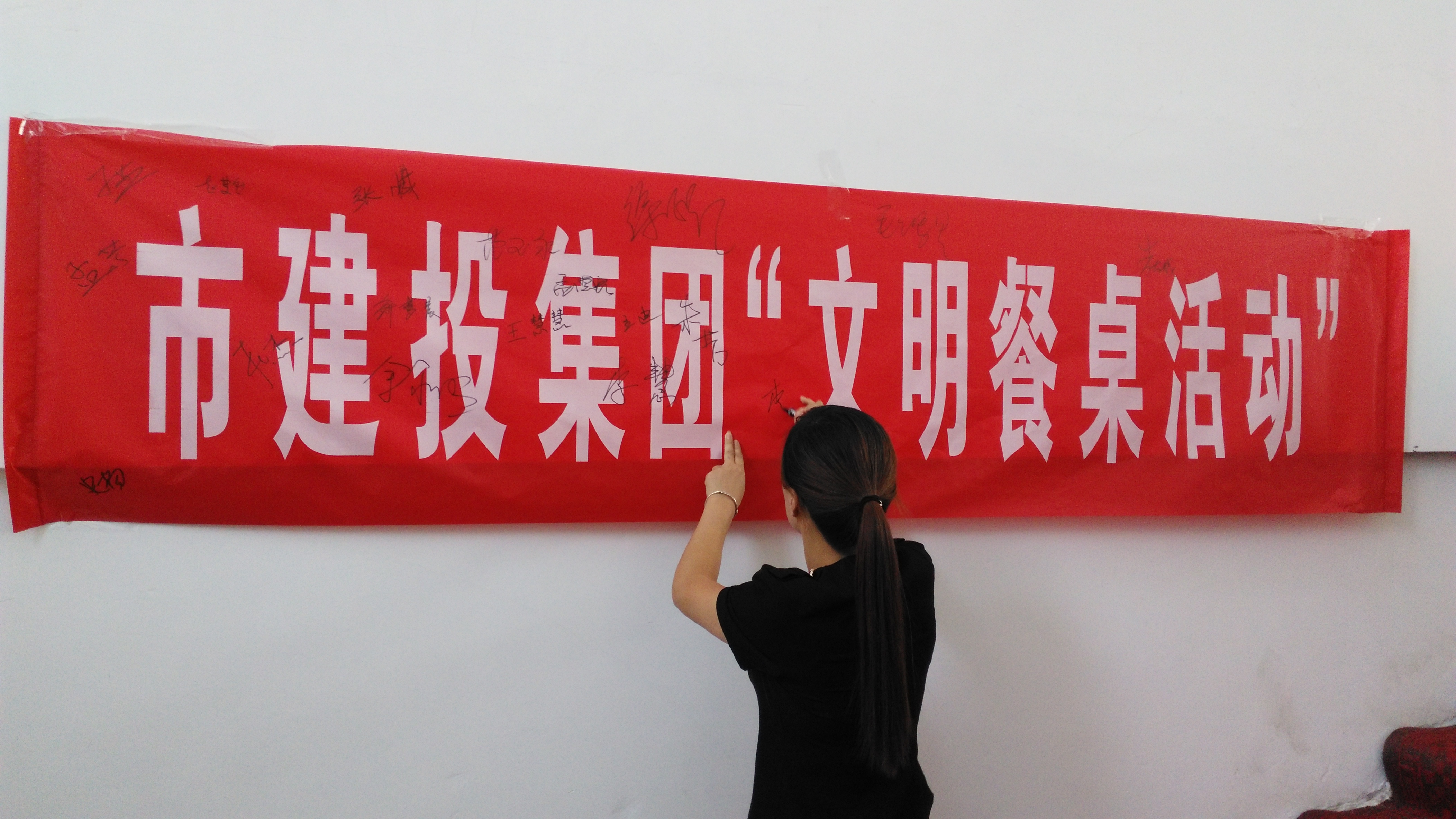 淮北市建投控股集團有限公司開展以“文明就餐,從我做起”為主題的簽名活動。 同事們積極響應倡議并在橫幅上簽字,把文明就餐真正落實到個人行為上,使節(jié)約真正成為自己的生活習慣。