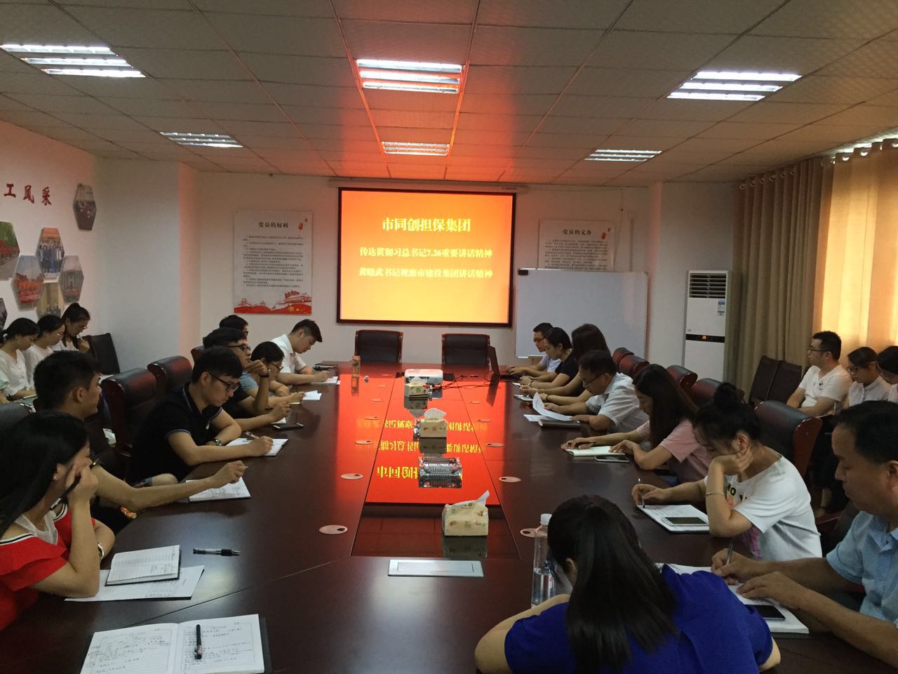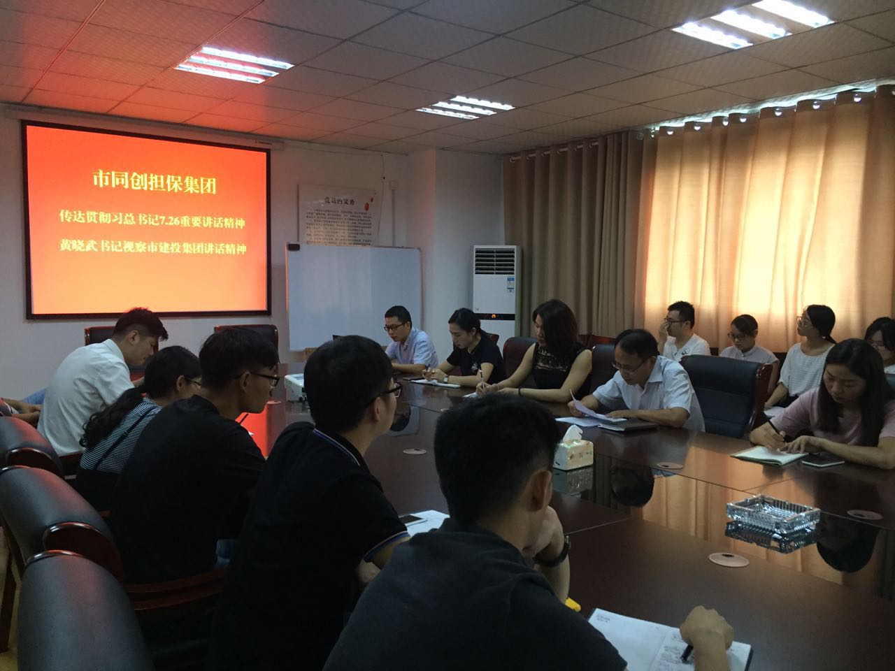 8月22日,市同創(chuàng)融資擔(dān)保集團(tuán)組織全體員工學(xué)習(xí)貫徹習(xí)總書記7.26重要講話精神與市委書記黃曉武同志調(diào)研市建投集團(tuán)講話精神。