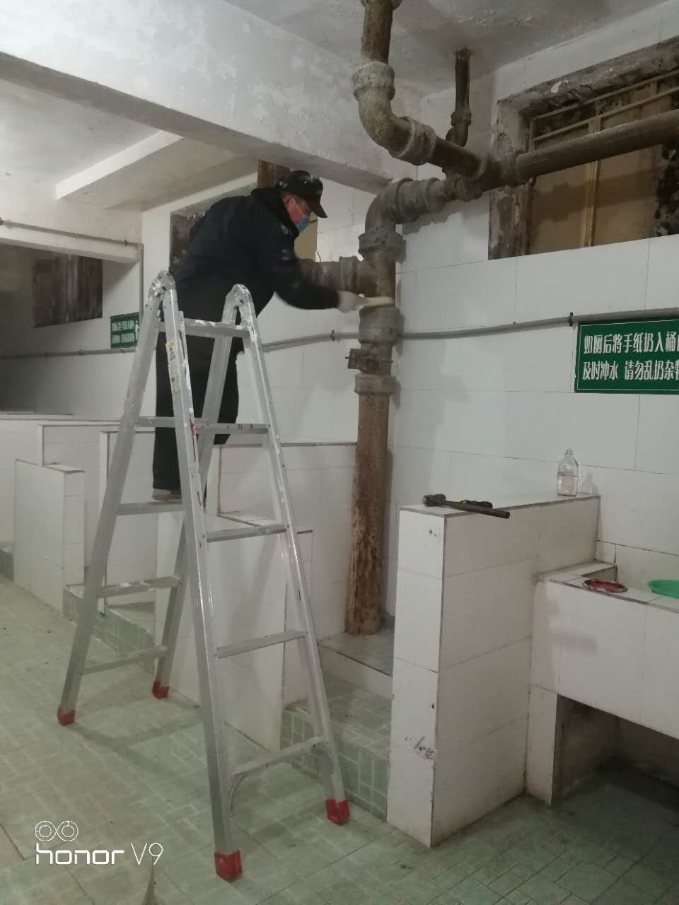 二中院內(nèi)的公廁從以前的破舊不堪到如今的整潔衛(wèi)生都離不開停車場(chǎng)班組的悉心維護(hù)。新年有新氣象,為了使二中公廁更潔凈更安全,讓來公廁方便的市民更安心,二中停車場(chǎng)班長馬毓森同志不畏寒冷,不怕臟,不怕累,為公廁內(nèi)裸露在外的管道作了除銹防腐處理并刷上油漆,以防管道年久失修發(fā)生泄露給市民帶來麻煩。