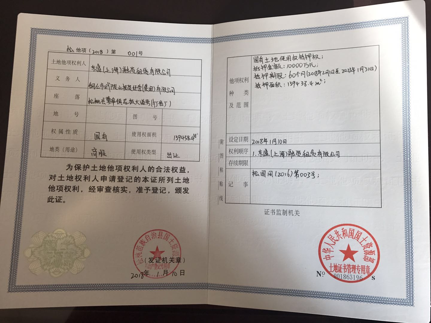 1月12日上午在盡調(diào)人員的不懈努力下,松桃縣人民醫(yī)院院長順利的簽訂了融資租賃合同及醫(yī)療設備所有權(quán)轉(zhuǎn)讓協(xié)議,緊接著盡調(diào)人員趕往松桃苗族自治縣不動產(chǎn)中心,在武投公司相關(guān)工作人員的配合下,對松桃縣打鹽場附近價值2億元的土地辦理了土地抵押手續(xù)。