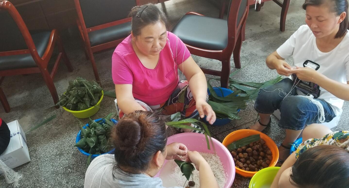 在包粽子過程中,大家互相交流,互相學(xué)習(xí),不會包的員工拿著粽葉一步一步的跟著會包的員工學(xué)習(xí),雖然包的不太好,但是看著自己親手包好的粽子很是欣喜。