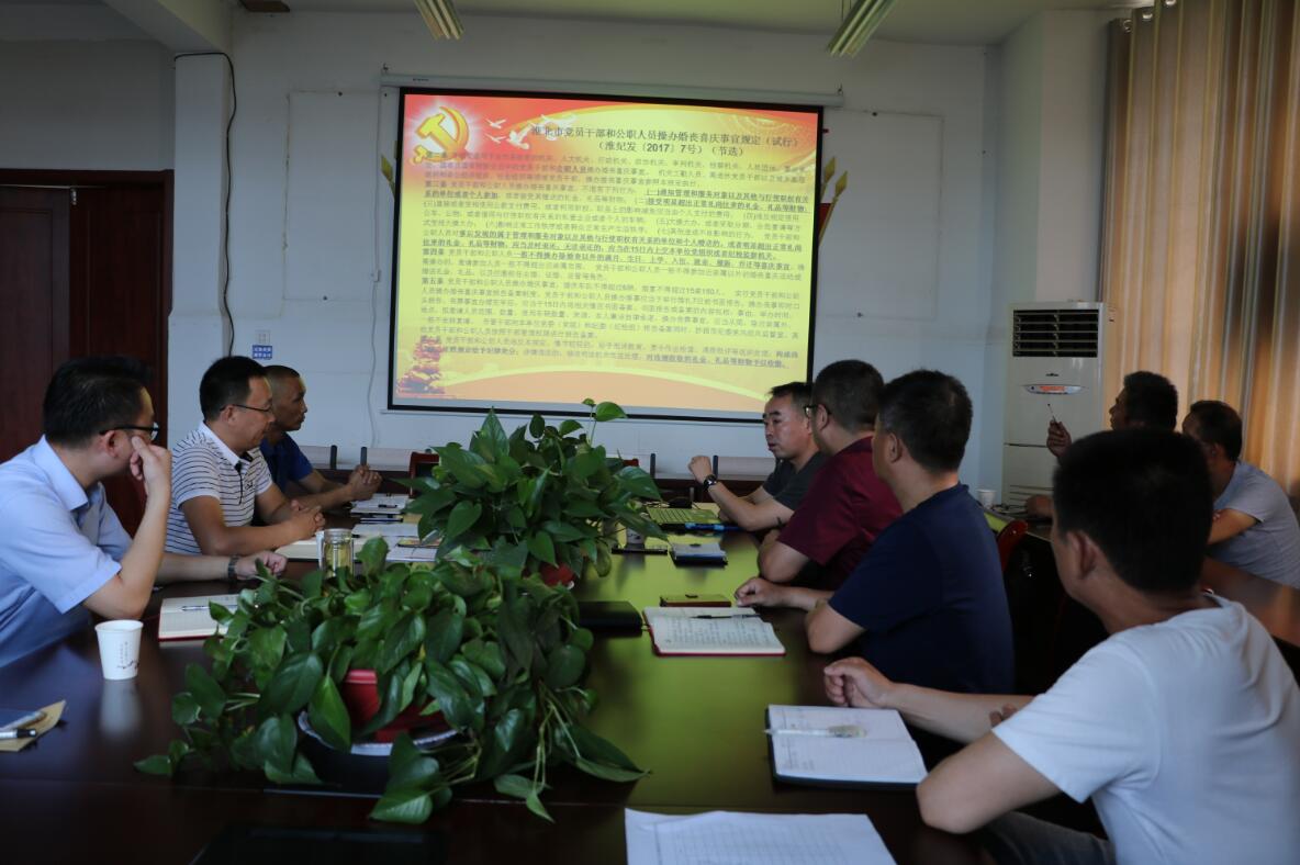 會(huì)上,深入學(xué)習(xí)了《淮北市黨員干部和公職人員操辦婚喪喜慶事宜規(guī)定(試行)》、《關(guān)于嚴(yán)禁黨員干部和公職人員操辦“升學(xué)宴”“謝師宴”的通知》和《淮北市建投控股集團(tuán)有限公司員工使用微信等即時(shí)通訊工具的規(guī)定》,并圍繞文件的核心精神進(jìn)行了熱烈的討論。