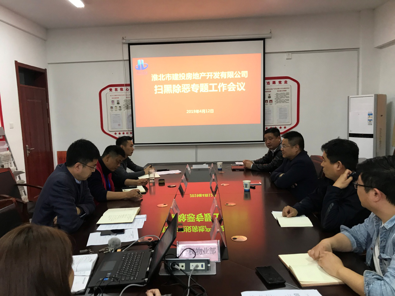 2019年4月12日,為響應(yīng)國家掃黑除惡專項斗爭,房地產(chǎn)公司召開了掃黑除惡專項工作會議,認(rèn)真學(xué)習(xí)了《關(guān)于開展掃黑除惡專項斗爭的通知》、《掃黑除惡專項斗爭應(yīng)知應(yīng)會內(nèi)容》,對掃黑除惡專項斗爭工作進(jìn)行了集中學(xué)習(xí)宣貫。